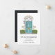 Anúncios encantadores e modernos e em movimento deixam amigos e familiares saberem sobre sua nova casa doce! Design apresenta uma ilustração de uma porta aqua clara esboçada, flanqueada com arbustos verdes, com "venha bater na nossa porta" embaixo. Personalize com seu novo endereço e nome ou nomes de família.