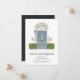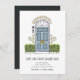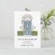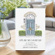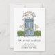Anúncios encantadores e modernos e em movimento deixam amigos e familiares saberem sobre sua nova casa doce! Design apresenta uma ilustração azul esboçada da porta, flanqueada com arbustos verdes, com "venha bater na nossa porta" embaixo. Personalize com seu novo endereço e nome ou nomes de família.
