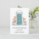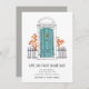 Anúncios encantadores e modernos e em movimento deixam amigos e familiares saberem sobre sua nova casa doce! Design apresenta uma ilustração de porta azul esboçada emoldurada por tijolos, com "venha bater em nossa porta" embaixo. Personalize com seu novo endereço e nome ou nomes de família.