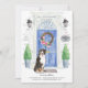 Anuncie seu novo discurso com nosso anúncio de na moda com um Cão de Montanha Bernês, porta azul, tapete de boas-vindas, letreiro, topiários e uma coroa floral em um fundo de tijolo de cinza.