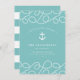 Nossos anúncios em movimento na costa em turquesa e branco apresentam corda náutica branca detalhando com a ilustração de âncora de um navio. "Nós soltamos âncora!" aparece acima de seus novos detalhes de endereço em caracteres náuticos.