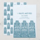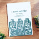 Cidade estilo retrô com prédios de cidade de desenho animado em azul para um anúncio de novo endereço muito exclusivo.