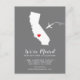 Anúncio de mudança moderno com o estado da Califórnia com um coração vermelho e avião em um fundo cinza. A cor do fundo pode ser alterada facilmente clicando em personalizar e, em seguida, clique para personalizar ainda mais para ver nossa paleta de cores. A partir daí, você também pode mover o avião e o coração! Entre em contato com nossa loja se precisar de ajuda ou precisar de outro estado.