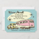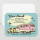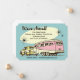 Design divertido para avisar a todos que você tem um novo endereço. Carro retrô dos anos 60 puxando um reboque. O texto diz: NÓS NOS MUDAMOS! Texto personalizável. Original PinkInkArt!