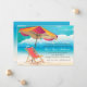 Um brilhante design com tema de praia. Apresentado aqui como um anúncio animado, é perfeito para o entretenimento de verão e celebrações. Uma cadeira de praia e um guarda-sol estão montados na costa arenosa em um belo dia de verão.