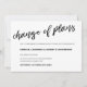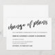 Cartão de adiamento de data de casamento elegante, preto e branco, manuscrito, apresentando um "Mudança de planos" caligráfico.