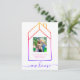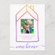 Anúncio de mudança de casa simples e elegante com caligrafia colorida e minimalista. +++++++++ Fácil de personalizar com seu texto e foto personalizada em ambos os lados.