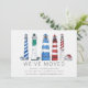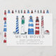 Anúncio em movimento colorido com uma fileira de faróis vermelhos, brancos e azuis, colocados sobre um fundo branco com uma coordenação de volta para um toque especial extra.