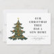 Anuncie sua nova casa de festas para a família e amigos com este moderno design de natal floral de inverno, com uma ilustração de árvore de natal.