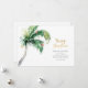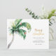 Anúncio de Mudança de Natal Costeira com Palmeira que você pode personalizar facilmente clicando no botão "Personalizar". Adicione sua mensagem personalizada e nomes no verso