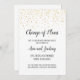 Este elegante Anúncio de Adiamento de Casamento com Caligrafia e Confetes Dourados é perfeito para informar os convidados sobre o adiamento do casamento ou outro evento. O design sofisticado apresenta confetes dourados falsos em um fundo branco, com caligrafia escura e elegante. Personalize o anúncio com o tipo de evento, nomes do casal e a nova data.