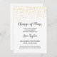 Este elegante Anúncio de Adiamento de Chuveiro de Bebê com Confete Dourado é perfeito para informar os convidados sobre o adiamento do chuveiro de bebê neutro em gênero ou sprinkle, chuveiro de noiva ou outro evento. O design sofisticado apresenta confete dourado falso em fundo branco com caligrafia simples. Personalize o anúncio com o tipo de evento, nome da homenageada e a nova data.