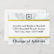 Precisa fazer um anúncio de mudança? Este cartão postal tem uma textura de mármore branco e você pode personalizá-lo com seu monograma, nome e novo endereço. No topo, há um quadrado para o seu monograma. Na parte inferior, há texto preto personalizado (mostrado: 'Mudança de Endereço'). No meio, há um fundo branco para o seu nome e novo endereço.