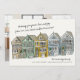Cartão de anúncio de mudança de feriado desenhado à mão com uma ilustração das Painted Ladies, as casas vitorianas decoradas na Alamo Square, em San Francisco. Adicione sua própria foto na parte de trás ou vá para Editar e exclua para um simples cartão de férias divertido. Se você excluir a foto, o fundo será um verde menta coordenado para combinar com a segunda casa na frente. Arte original e design por Annie Montgomery Design.