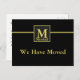 O texto em dourado falso tem um monograma personalizado com o sobrenome sob a letra. O texto mostrado diz: 'Nós nos mudamos'. No verso, você pode personalizar seu cartão com seu novo endereço e outras informações desejadas.