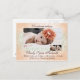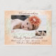 Elegantemente belo, este damasco impresso em verde claro e laranja pálido cria um anúncio de nascimento dramático e atraente, apresentando 3 fotos e todas as informações importantes! O verso é em branco para personalizar como desejar para uma festa de casa aberta para conhecer o seu novo membro ou simplesmente uma maneira maravilhosa de compartilhar sua alegria com familiares e amigos. Com certeza será um item de recordação precioso para todos!