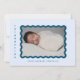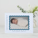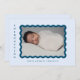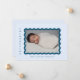 Anuncie o nascimento do seu menino com este cartão de anúncio de tendências que apresenta sua foto favorita de seu pequeno em um quadro azul-marinho em um plano de fundo azul de bebê e texto de marinho. Adicione uma mensagem pessoal ao contrário.