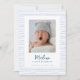 O Clássico Anúncio de Nascimento Tirado de Azul Estimulado à Mão apresenta um momento apreciado com o estilo clássico. Capturar a essência pura da alegre viagem à paternidade com este anúncio de nascimento. Feito com um toque de nostalgia e um traço de charme moderno, este anúncio é a maneira perfeita de apresentar seu pequeno pacote de alegria ao mundo. Escondida dentro de uma fronteira azul riscada, desenhada organicamente, a foto do seu precioso recém-nascido toma palco central, cercada pelo calor da tradição e pela promessa de novos começos. As matizes suaves e gentis das listras azuis exaltam um senso de calma e crescimento, simbolizando o novo capítulo na história da sua família. Cada detalhe é projetado para a perfeição - desde os traços artísticos, imperfeitos das riscas que irradiam um sentimento autêntico, ao papel de alta qualidade que empresta um toque de elegância. O clássico design é um aceno à natureza eterno do amor e da família, garantindo que este anúncio será apreciado não só por você, mas também por aqueles afortunados o suficiente para recebê-lo. Quer você esteja compartilhando as notícias com familiares e amigos próximos ou fazer anúncio para um círculo mais amplo, este anúncio de nascimento combina facilmente a tradição e a estética contemporânea. Não é apenas um pedaço de papel; é um pedaço do seu coração, um símbolo do amor que floresceu com a chegada do seu pequeno. Celebrar o milagre da vida, anunciar a chegada do seu bebê, e espalhar a felicidade com este anúncio clássico de nascimento. Um guardião que capta a essência de um momento, para sempre enquadrado dentro das listras azuis desenhadas à mão - uma fronteira que significa o incansável amor e alegria que sua nova jornada retém. Inclua uma foto adicional e detalhes da chegada da nova na parte traseira da placa.