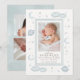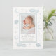 Dê as boas-vindas ao seu pequeno ao mundo com um design que se sente tranquilo, sonhador e serenamente lindo. Este anúncio de nascimento celestial em aquarela azul suave apresenta suaves lavagens de tons inspirados no céu, combinados com sutils acentos celestiais, criando um cenário calmante para os detalhes mais preciosos do seu bebê.