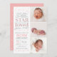 Este doce anúncio de nascimento multifoto apresenta a frase "Torneira, pequeno astro, você sabe o quanto você é amado" e um borrão de estrelas nos detalhes do nascimento de seu recém-nascido.