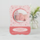 Um doce anúncio de nascimento fotográfico para apresentar o seu pequeno. Flocos de neve deliciosos e uma janela fotográfica redonda em cor rosa e bagas criam o design. (FP)