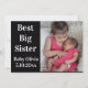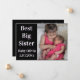 Cartão de anúncio de nascimento para inserir foto com texto que diz "Melhor Irmã Mais Velha". Ótimo para um irmão ou irmã mais velho que dá as boas-vindas a um novo irmão ou irmã na família! Mensagem especial que você pode personalizar no verso. Design moderno e elegante em preto e branco.