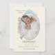 Anuncie a chegada da sua doce menina com este elegante anúncio de nascimento. O fundo creme apresenta uma moldura oval decorativa e uma grinalda de rosas pastéis. (FP, VTZ)