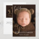 Anuncie a chegada do seu bebê com este anúncio de nascimento caloroso e aconchegante, apresentando uma tipografia elegante. Projetado para mostrar um retrato de recém-nascido na frente e no centro, este cartão atemporal inclui espaço para o nome do bebê, data de nascimento, hora, peso e comprimento. Um design refinado e neutro em termos de gênero, inspirado em texturas naturais e cores terrosas suaves, perfeito para famílias que amam o estilo clássico com um toque moderno e sentido.