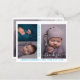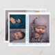 Anuncie a chegada do seu bebê aos seus amigos e família por esta carta moderna. O design tem três colagens de fotos na frente com texto branco de caligrafia "Obrigado" e o nome e os detalhes de nascimento do bebê. Na parte de trás, você tem duas imagens e sua mensagem pessoal. Personalize o cartão com suas fotos de bebê, detalhes de natalidade, notas de agradecimento pessoal e nomes.