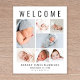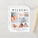 Um anúncio de nascimento elegante e acessível para apresentar seu bebê recém-nascido à família e aos amigos. Esta design apresenta "Bem-vindo" no topo da lista em grande tipografia, uma colagem de 7 fotos e seu nome, data de nascimento e estatísticas de natalidade em simples tipografia moderna. No verso, adicione outra foto e uma mensagem personalizada.
