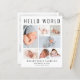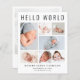 Um anúncio de nascimento elegante e econômico para apresentar seu bebê recém-nascido à família e amigos com "Hello World" em letras grandes, uma colagem de sete fotos e seu nome, data de nascimento e estatísticas de natalidade em uma simples tipografia moderna. No verso, adicione uma foto adicional e sua mensagem personalizada. Este papel semirbrilhante do orçamento é semelhante em peso ao papel fotográfico. Uma versão tradicional do estoque do cartão também está disponível (mensagem para o link).