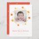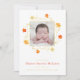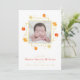 Uma coroa de aquarelas florais cor de laranja feitas sob medida foi projetada para circundar e aprimorar sua foto favorita. O verso do anúncio incorpora elementos da coroa, criando um olhar coeso e a adição de um pop ousado de cor equilibra a natureza delicada do design.