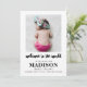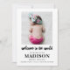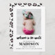 Adorável anúncio de nascimento de uma menina "Bem-vinda ao mundo" com sua foto favorita do seu novo bebê. Personalize esta design com a sua fotografia, o primeiro, o meio e o sobrenome do bebê, a data de nascimento, a hora, o peso e o comprimento. Este anúncio moderno de nascimento de bebês reverte para um design de impressão de animais brancos e guepardos pretos e cor-de-rosa.