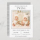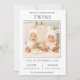 Cartão de nascimento de gêmeos com tipografia moderna contra fundo branco. Adicione todos os seus detalhes sobre este modelo fácil de usar e enfeite este cartão com sua foto de gêmeos recém-nascidos para fazer dele um anúncio generoso. Sacudir a placa para revelar um padrão de listras de cinza na parte traseira da placa.