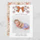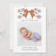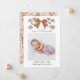 Cartão de anúncio de nascimento bonito com uma foto do seu recém-nascido com ilustração de um arco de terracota e flores.