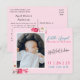 Compartilhe o momento precioso da sua chegada com nosso charmoso cartão postal de anúncio de anjo pequeno. Com uma fotografia encantadora do seu novo bebê cercado por um fundo rosa, este cartão postal é a forma perfeita de apresentar o seu anjo aos amigos e à família. Personalize-o com a data de nascimento, peso, altura, e a mensagem animadora, "Bem-vindo ao Mundo!" Expresse sua alegria e gratidão enquanto celebra este marco especial com seus entes queridos.