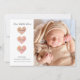 Um anúncio único e moderno de nascimento de fotos de bebês com corações aquáticas, pais e nomes de mamães dentro dos corações. Substitua esta foto por sua foto recém-nascida. Se precisar de ajuda, entre em contato comigo através do link "mensagem" na minha loja ou do ícone do Zazzle "chat" perto do topo da página. Você pode clicar em "personalizar ainda mais para usar a ferramenta design para alterar o tamanho da fonte ou da fonte.