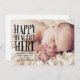 Este anúncio fotórico de bebê apresenta uma tirpografia negra divertida e uma foto de sangria de cheio da sua nova.