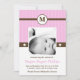 Estas adoráveis Meninas Marrom e Rosa Striped Monograma O Anúncio Inicial de Nascimento FOTO são impressos em um papel de peso de cobrir de 110 lb, tamanho 5 x 7. Contém 50% de conteúdo de reciclado. Perfeito para qualquer chá de fraldas, noiva, solteira, casamento ou convite de aniversário.