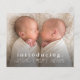 Um anúncio de nascimento de foto gêmea mínimo de orçamento com o tipo moderno e uma grande foto horizontal na frente. O verso tem 2 fotos com cabeçalho de nome grande e mensagem pessoal da família. Clique no botão editar para personalizar este design com suas fotos e detalhes.