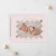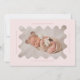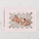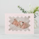 Cartão de anúncio de nascimento branco e doce, com foto desenhada à mão de uma linha ondulada rabugenta a rosa.