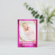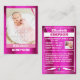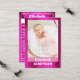Pense fora da caixa do batedor com este cartão de beisebol para seu filho. Assim como um cartão de beisebol real, há uma área para inserir a data de nascimento da sua filha, seu peso em libras e também em onças, e em vez da altura dela, você entra em seu comprimento. Há também um lugar para inserir o ano de elegibilidade da sua garota para ser redigida. Em vez de uma biografia de jogador, há uma caixa de texto para fazer seu anúncio de nascimento com um máximo de oito linhas de texto. A fronteira frontal do cartão e também o fundo na parte de trás é um tecido de camisa de esporte de malha azul. Além da foto do seu bebê na frente, há também uma no verso que você deve substituir por sua.