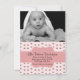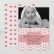 Na moda personalizado anúncio de nascimento de bebê fotográfico feito em um padrão listrado cor-de-rosa e branco, com bonito rosas rosa. Uma foto personalizada de bebê decora a parte superior, da placa plana, com uma área de texto decorativo cor-de-rosa, através do padrão floral. O texto preto personalizado pronto para personalizar, com a informação de nascimento do seu bebê. É uma maneira bonita de anunciar a chegada do seu bebê aos amigos e à família.