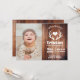 Anuncias de nascimento de aparas de madeira de celeiro rústico impressão e de veados brancos adequados para qualquer gênero.