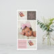 Apresente o seu novo pequeno ao mundo com este belo anúncio de nascimento moderno, feito em katkadoodle.com. Mocha castanho e fundo cor-de-rosa, dois tons suaves, tipografia contemporânea em rosa e marrom, e um estilo simples mostra três fotos retratos do seu doce bebê. Outras cores também disponíveis.