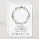 Um cartão com fotos moderno e elegante de nascimento de bebês com flores brancas e verdes de algodão em volta da foto do bebê. Basta substituir as fotos existentes na parte frontal e traseira por sua própria foto em face próxima e adicionar uma foto na parte traseira do cartão.