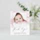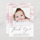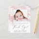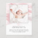 Obrigado de bebê amigável em orçamento, seu anúncio de nascimento apresentando pinceladas de pincel de aquarela cor rosa macia sobrecarregadas com a foto de seu recém-nascido e "Obrigado" em um roteiro elegante e contemporâneo com uma batida cardíaca. Personalize com seu nome de cheio, data de chegada e estatísticas de nascimento em uma simples tipografia moderna. No verso, adicione uma foto adicional, um obrigado personalizado e uma mensagem de anúncio.