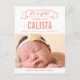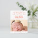 Doce e cheio de charme, este moderno anúncio de nascimento de fotos é a forma perfeita de apresentar o mais novo membro da sua família. Personalize o lado traseiro do cartão postal com seu endereço de devolução para facilitar o envio. Cor personalizada disponível mediante pedido.