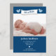 Lindos passarinhos anunciando a chegada do seu bebê. Adicione seus próprios detalhes e fotografia para criar um cartão de anúncio de nascimento fofo e adorável.