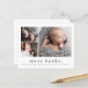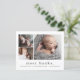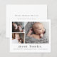 Um anúncio de nascimento em colagem de fotos doce com um nome moderno simples e 3 fotos na frente. A parte traseira tem um cabeçalho com o nome completo grande e uma mensagem pessoal da família. Clique no botão editar para personalizar este design com suas fotos e detalhes.